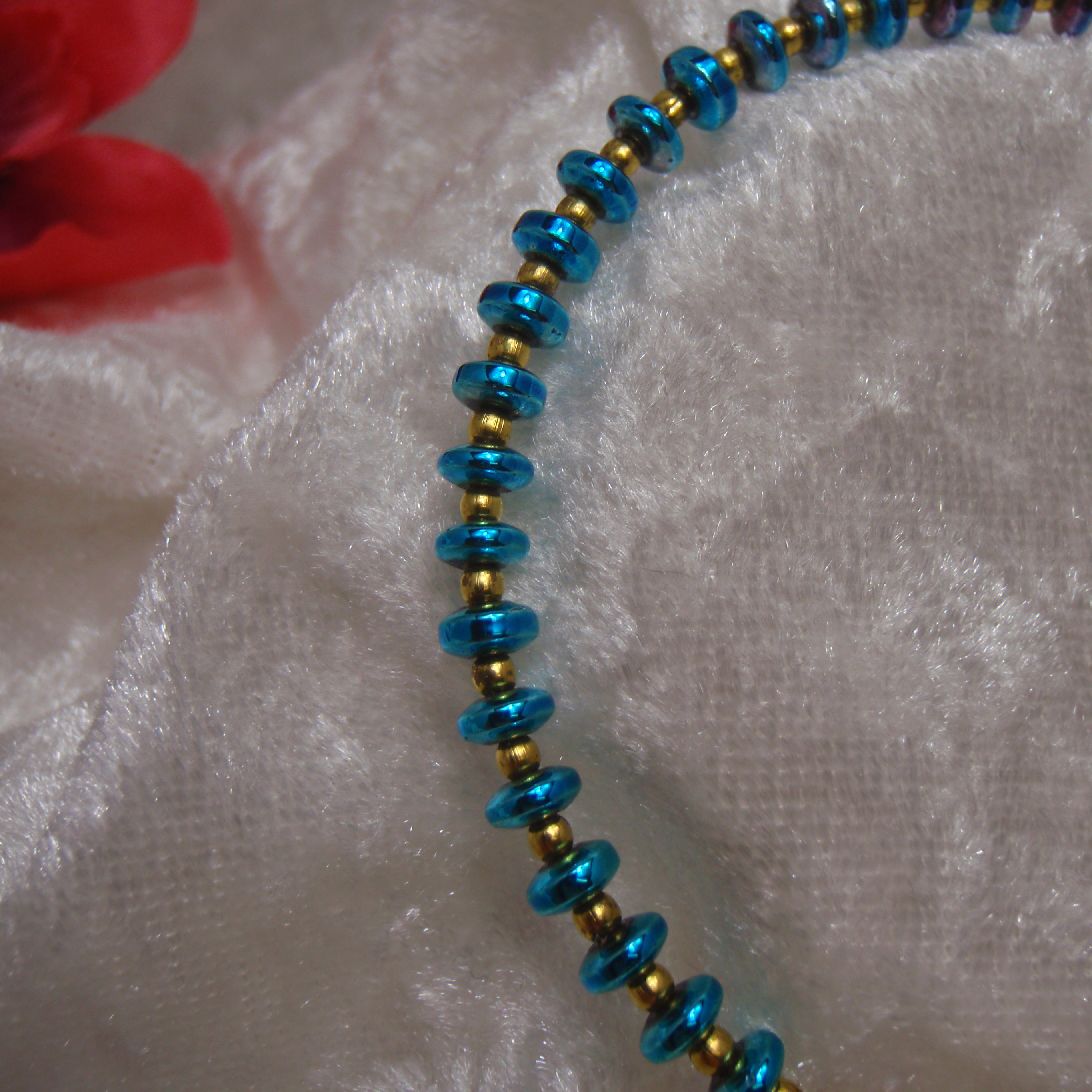 Refined and radiant, this elegant piece features shimmering rainbow hematite beads beautifully complemented by gold‑coloured metal beads and a polished clasp. Designed to reflect understated luxury, its iridescent tones catch the light effortlessly, making it the perfect accessory for both daywear and evening sophistication