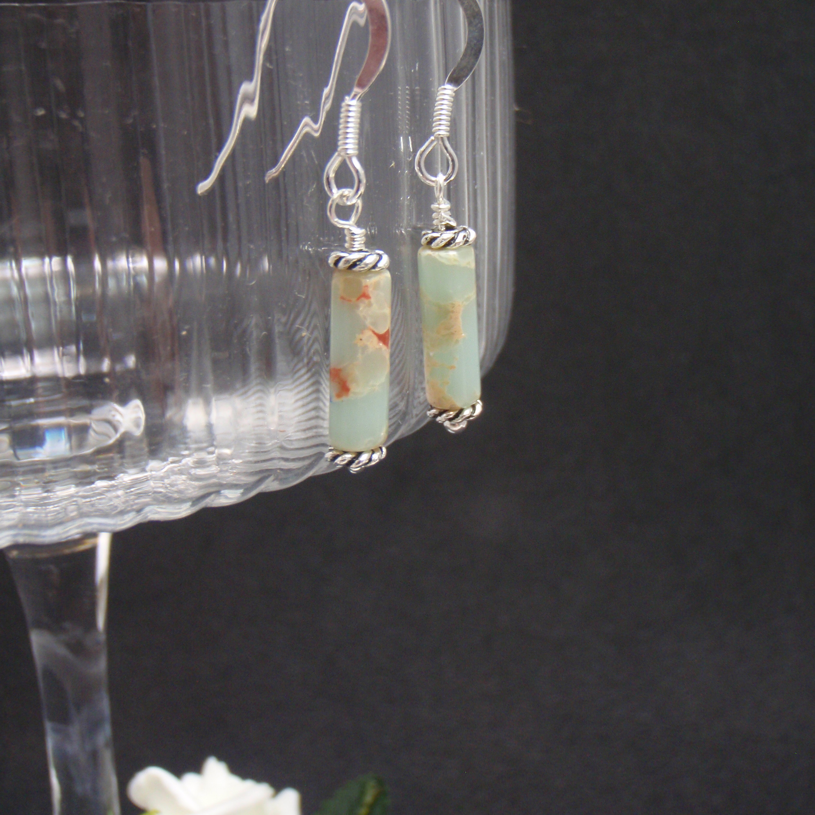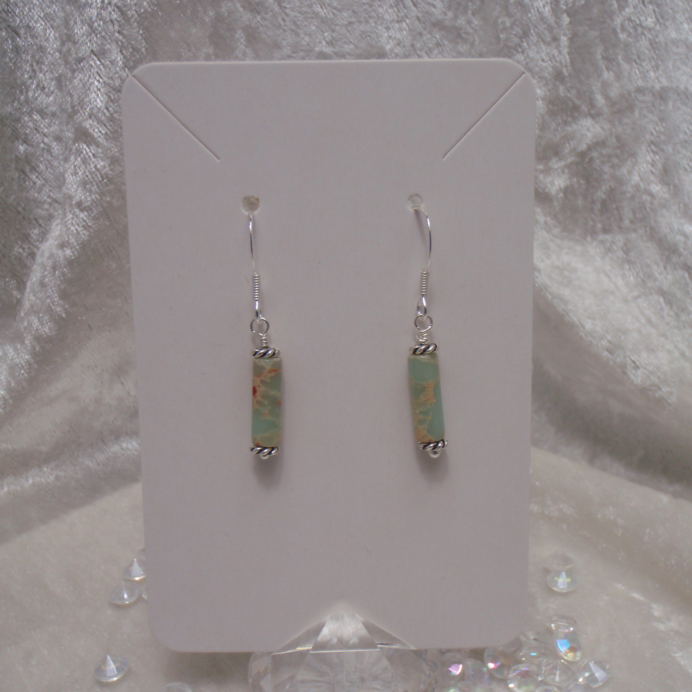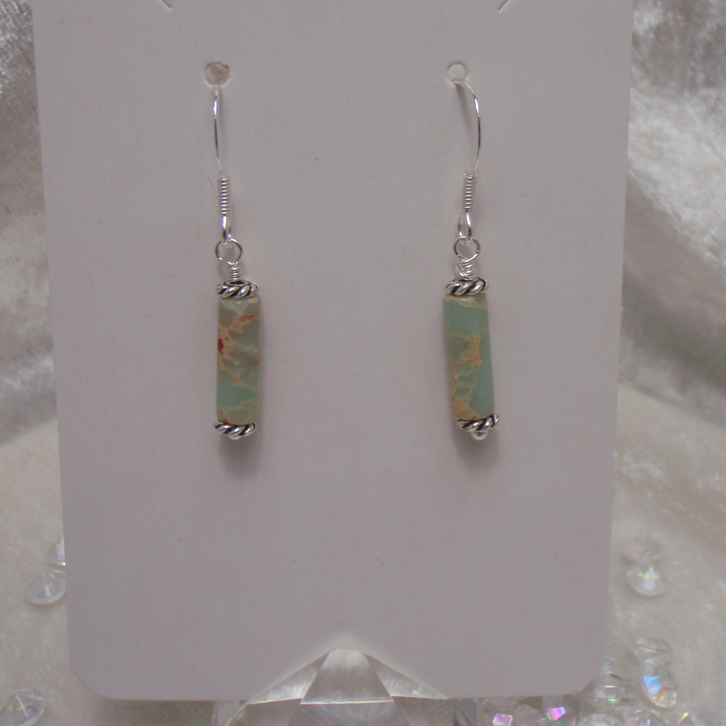 Jasper cylinder beads and sterling silver metal beads with sterling silver fish hook style earring.
